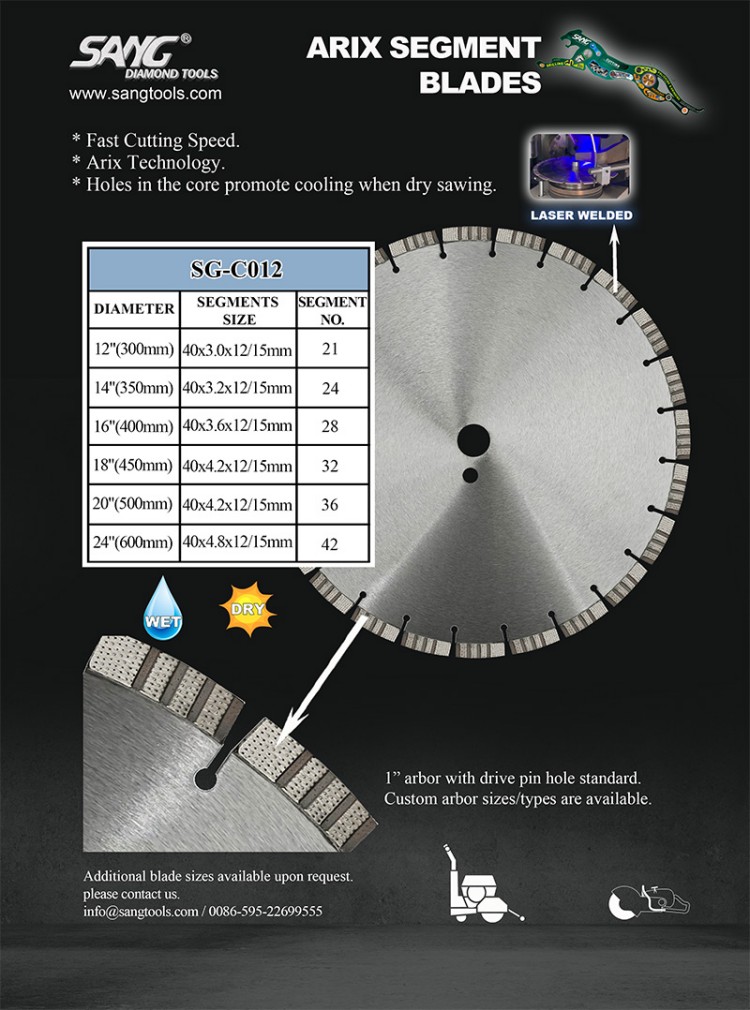 تیغه الماسه قطعه قطعه سری SANG Elite - طراحی شده برای برش خشک و مرطوب بتن عمل آوری شده و مسلح. سرعت برش عالی و مقاومت در برابر سایش را ارائه می دهد.