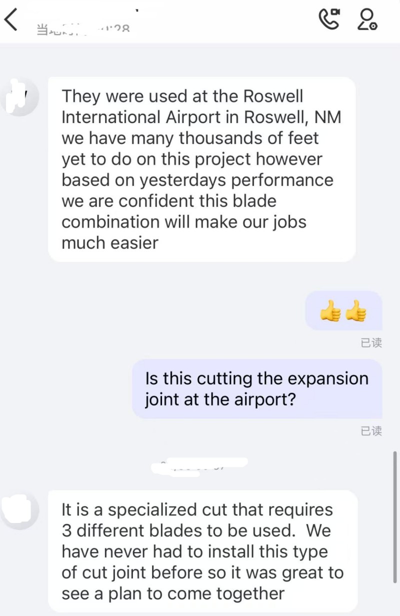 اخیراً یک اره سفارشی برای برش بتن در مقیاس بزرگ در فرودگاه بینالمللی راسول در نیومکزیکو ارائه داده است. مشتری، یک پیمانکار ساختمانی حرفهای، در طول فاز اولیه پروژه نتایج بسیار خوبی را گزارش کرد و به عملکرد برتر ترکیب تیغههای ما در یک کار برش بسیار تخصصی اشاره کرد.
